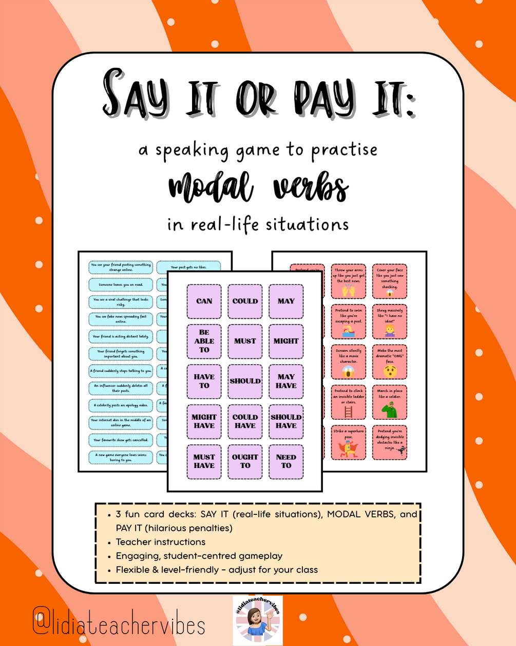Tired of boring grammar drills? Say It or Pay It turns modal verbs into a fun, interactive speaking game your students will actually enjoy!